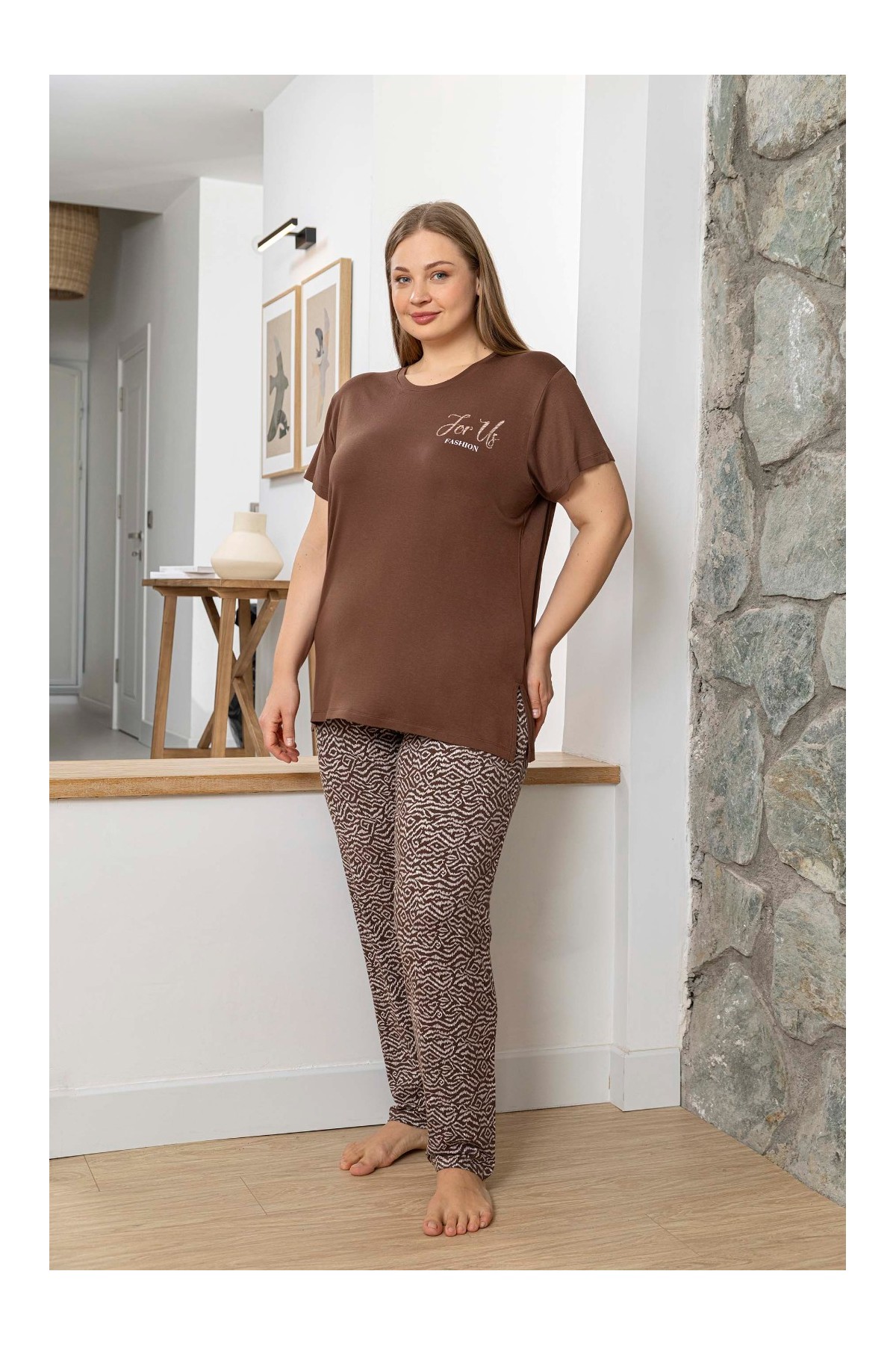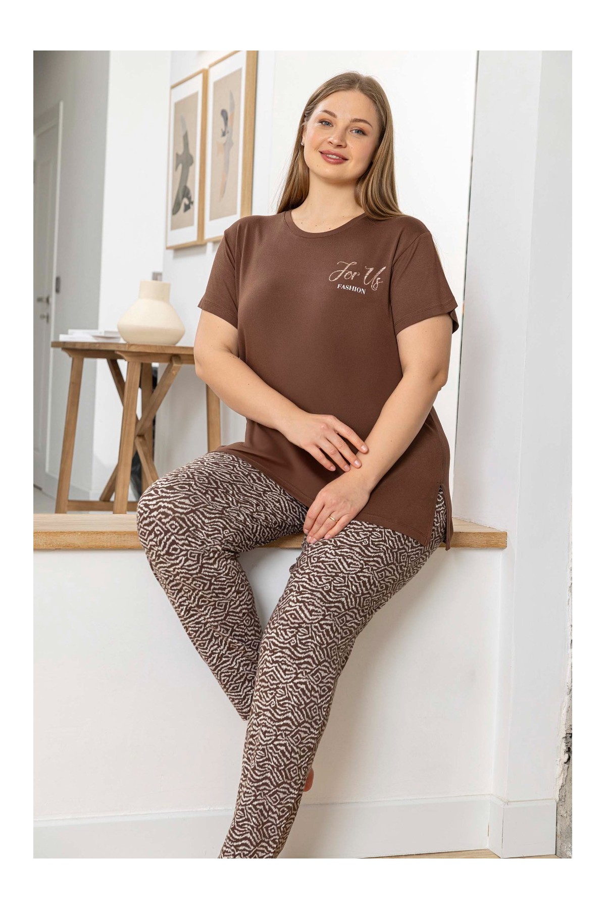 • - Alt-üst takım olarak tasarlanmış t-shirt-pantolon kombini, evde şıklığı ve rahatlığı bir arada sunar