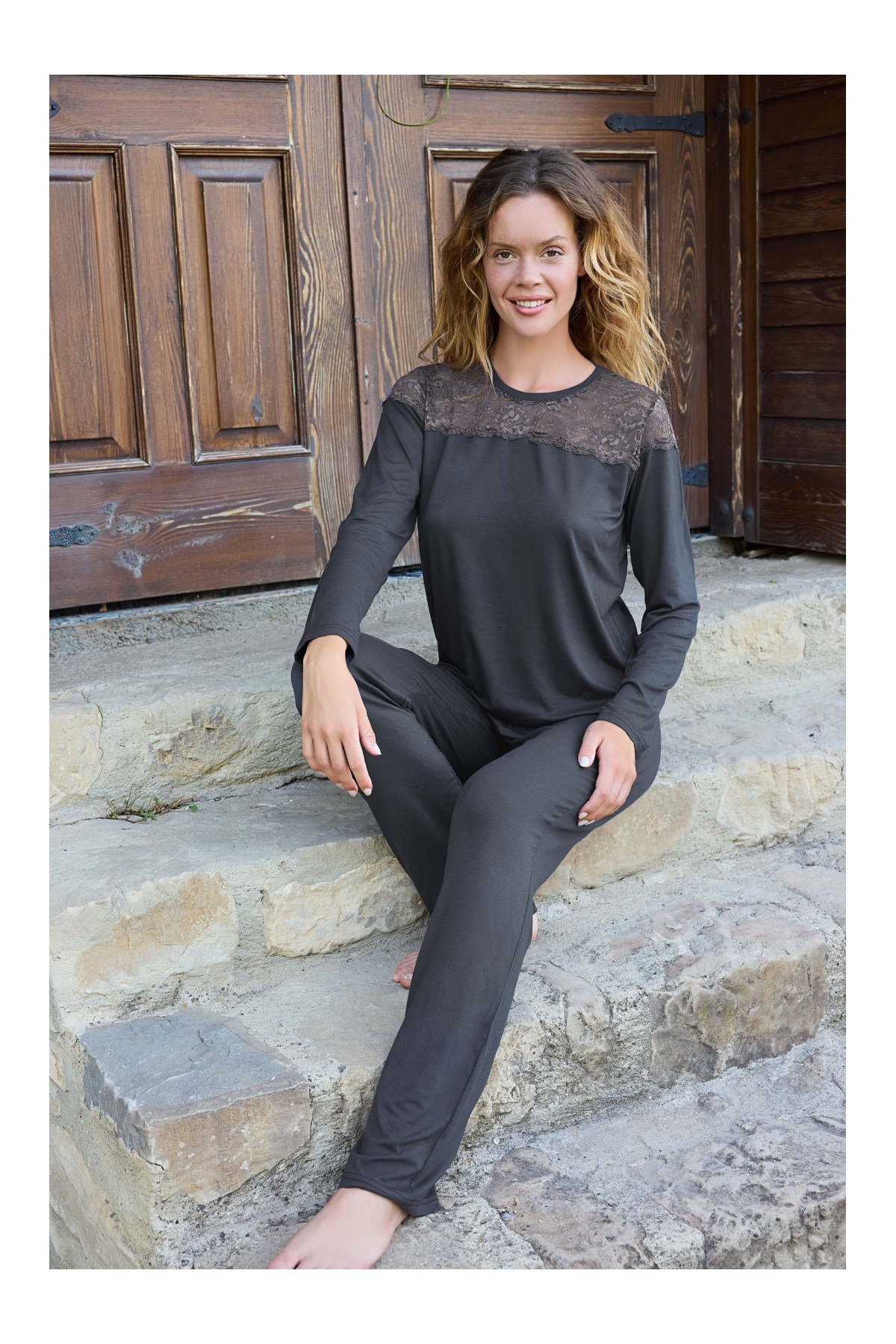 Aydoğan | Kadın Pijama Takımı Uzun Kollu Yakası Dantelli Viskon