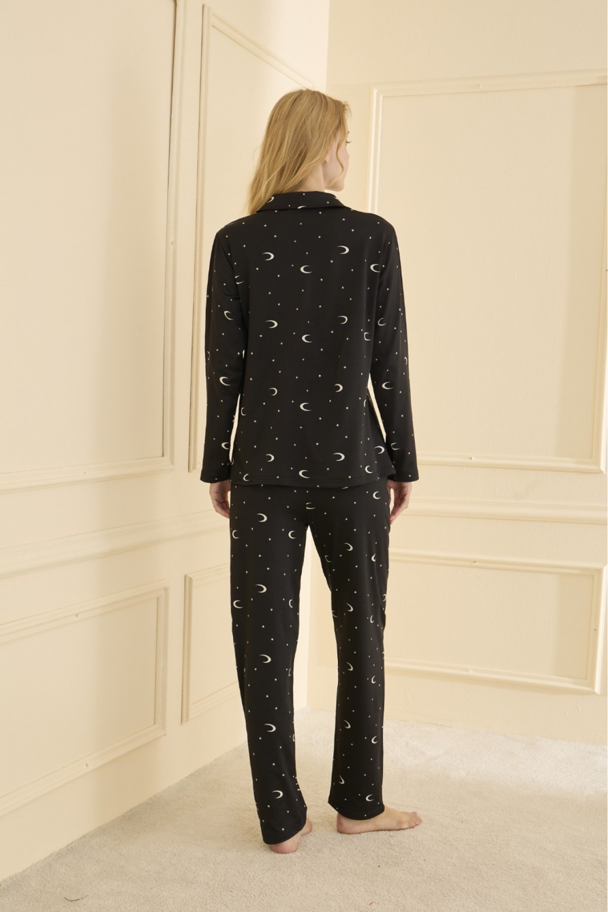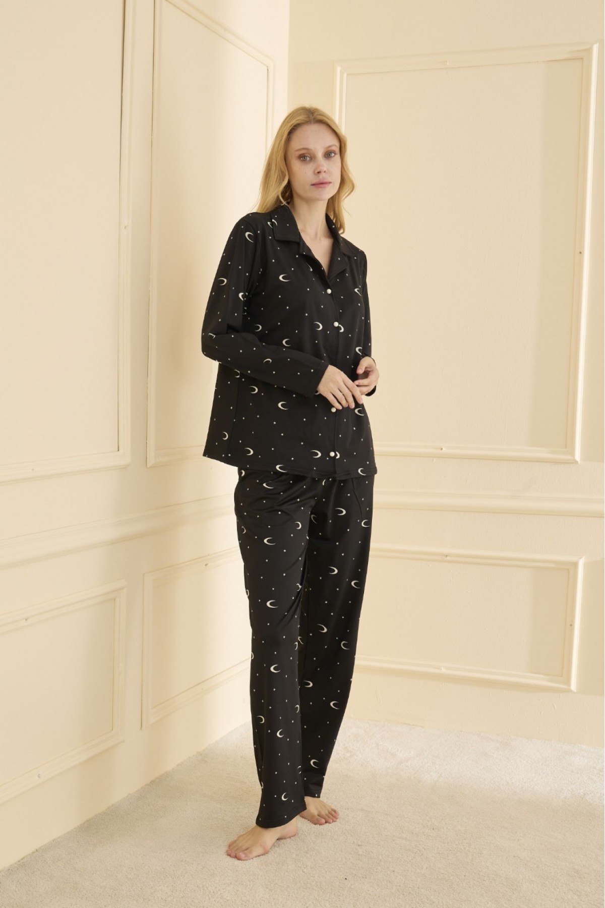 Pijamoni | Kadın Pijama Takımı Kısa Kol Viskon Önden Düğmeli